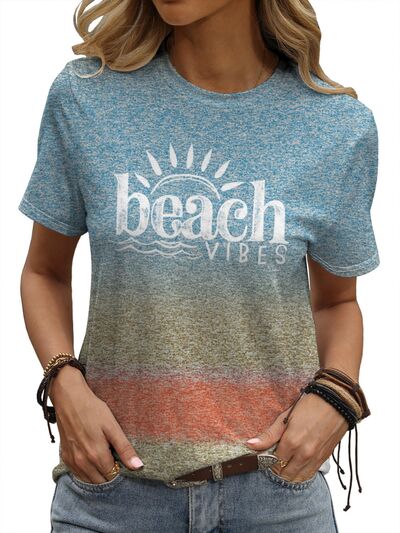 BEACH VIBES Round Neck Short Sleeve T-Shirt