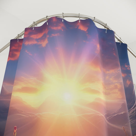 Sunrise field of flowers Polyester Shower Curtain - Stardust Divine Design