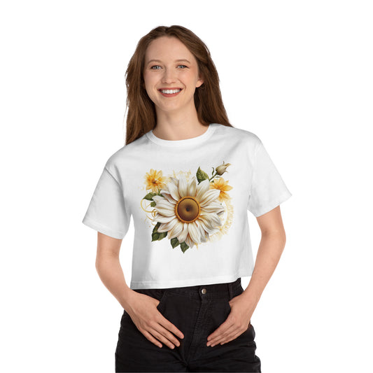 Sunflower Sun Moon Flowers Champion Women's Heritage Cropped T-Shirt - Stardust Divine Design